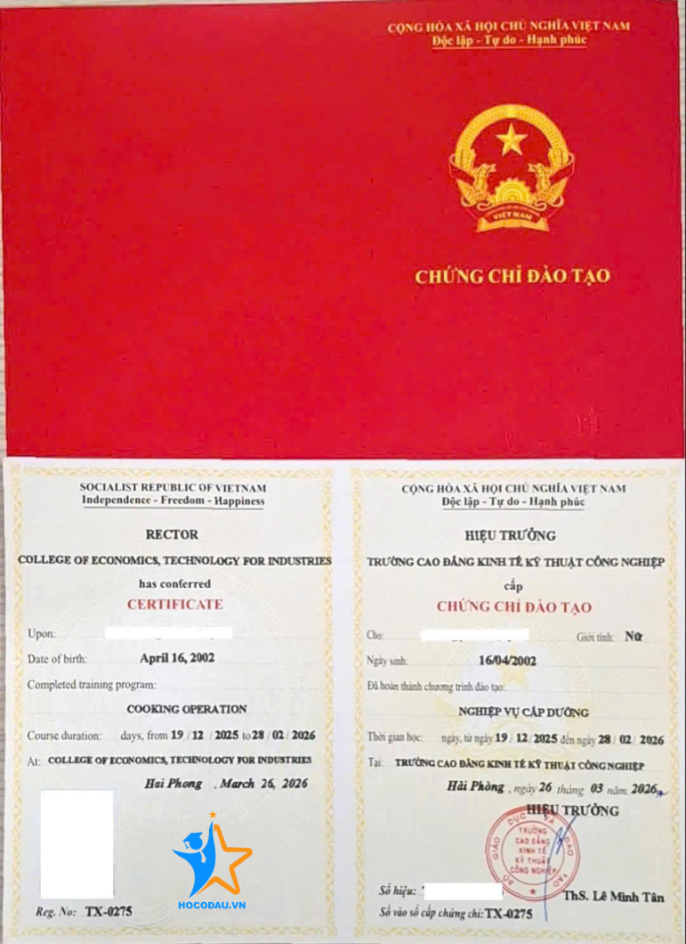 - Chứng chỉ: Cấp sau khi hoàn thành khóa học