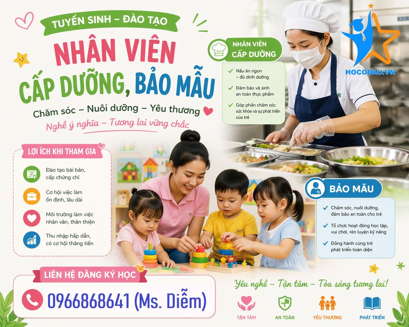 Hiện nay, các trường mầm non, nhóm trẻ tư thục, trường bán trú phát triển mạnh, kéo theo nhu cầu tuyển dụng nhân sự chăm sóc trẻ và chế biến dinh dưỡng ngày càng lớn. Đây là ngành nghề: